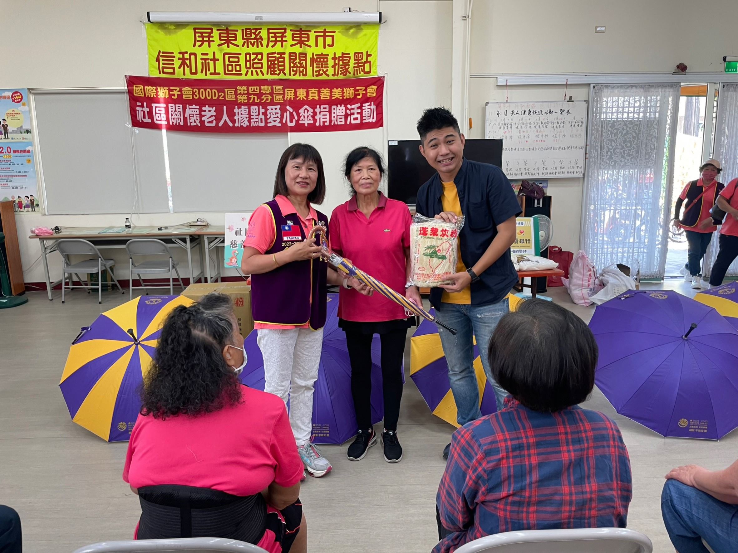 【愛在屏東】屏東縣各處的社區關懷據點,是最在地服務的好所在。屏慈聯在5月的另一個艷陽天,由屏慈聯理事陳素霞女士安排,與 #真善美獅子會 一同到屏東市信和社區照顧關懷據點。不僅有捐贈愛心傘活動,當天也與社區民眾推廣屏東縣物資銀行業務。趙文俊總幹事妙語如珠,與社區婆婆媽媽們來往熱絡,大家都更體會了屏東縣幸福物資銀行的服務宗旨。