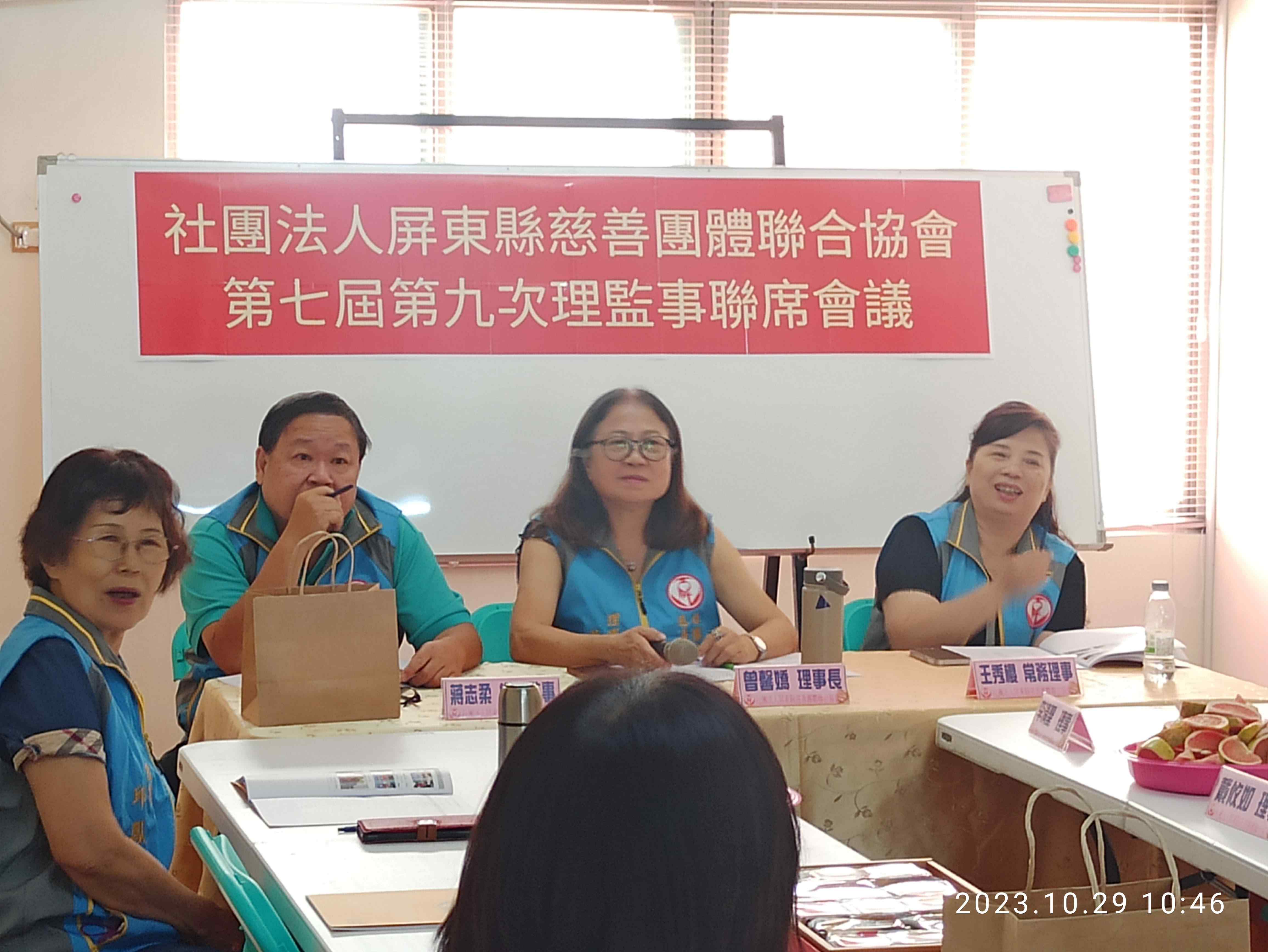2023/10/29屏慈聯於三樓綜合資源室舉辦了第七屆第九次理監事聯席會議,當天有來參加的理監事都是在百忙之中抽空前來,我們至上深深的感謝。😻