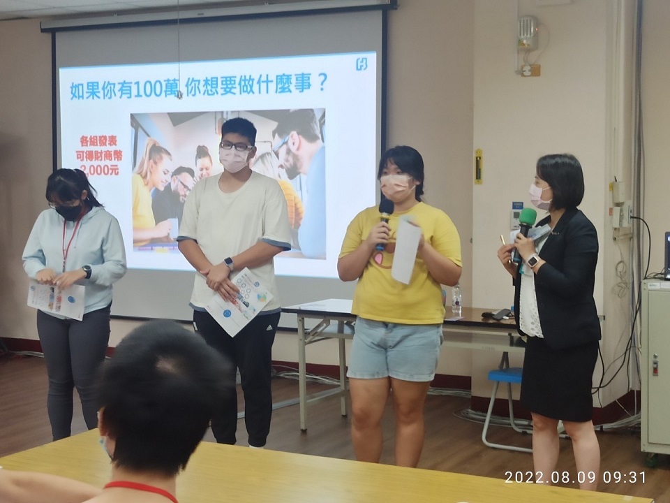課程內容:課程教導學子如何有效規劃收入、自我投資、創造價值,透過講師的生命故事分享及經驗教學,建立學子們正確理財觀念及立定目標!